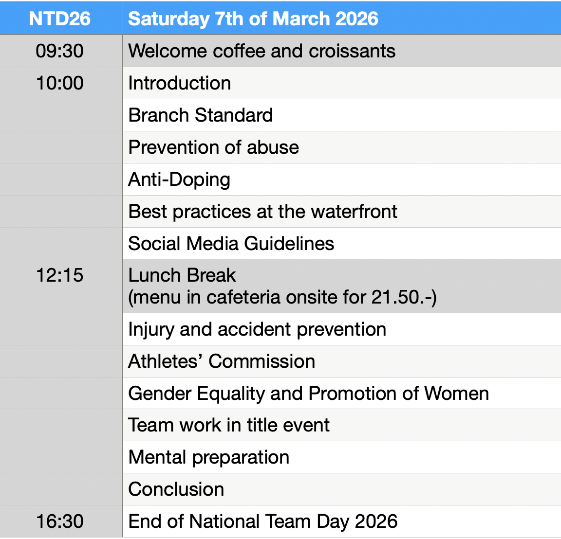 Les membres des équipes nationales seniors/masters peuvent également participer à cette journée, mais n'y sont pas obligés (liste des cadres 2026 ici).