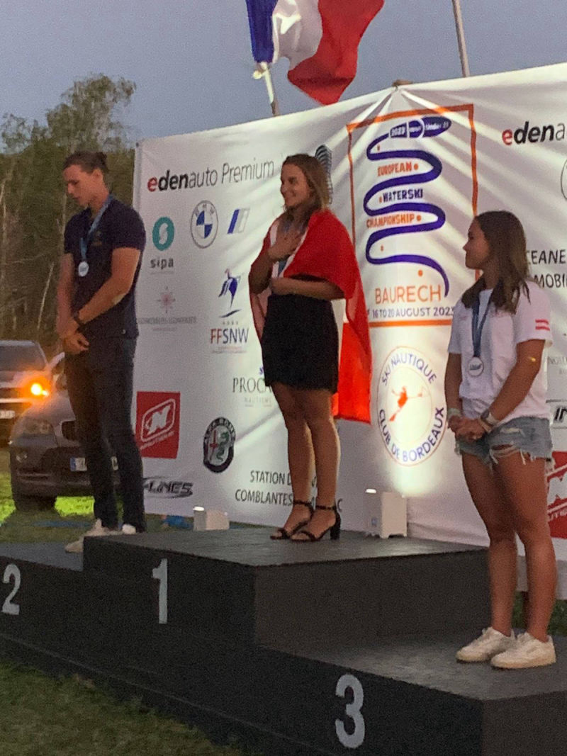 After a "runoff" for the first place with Inès Anguenot (France) (Julie and Inès had both done 2 buoys at 11 meters), Julie won the slalom final of the U21 European Championships.